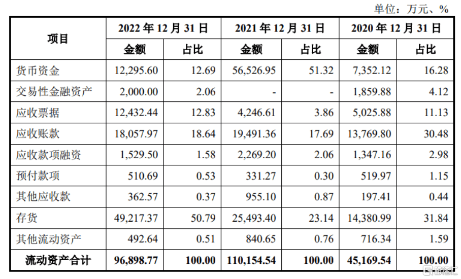 公司流动资产的构成情况,图片来源:招股书