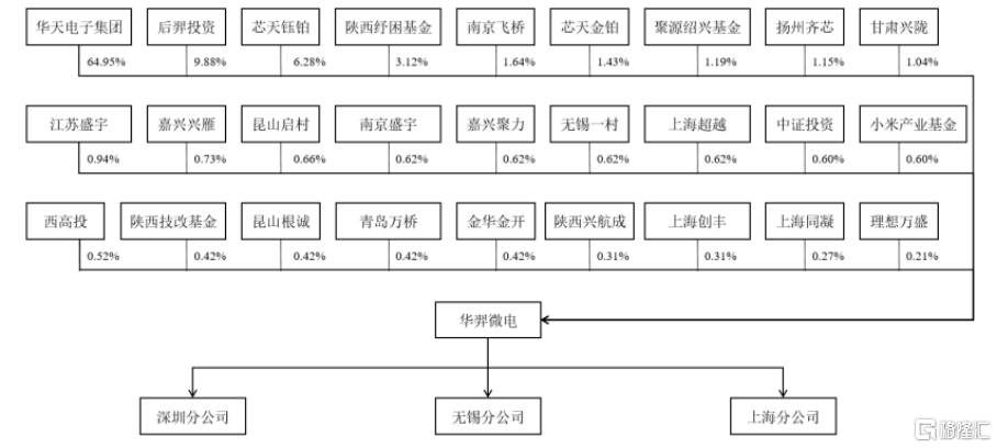 公司控股股东为华天电子集团,直接持有发行人64.95%股权;实际控制人为肖胜利、肖智成、刘建军、张玉明、宋勇、常文瑛、崔卫兵、杨前进、陈建军、 薛延童、周永寿、乔少华、张兴安13名自然人。