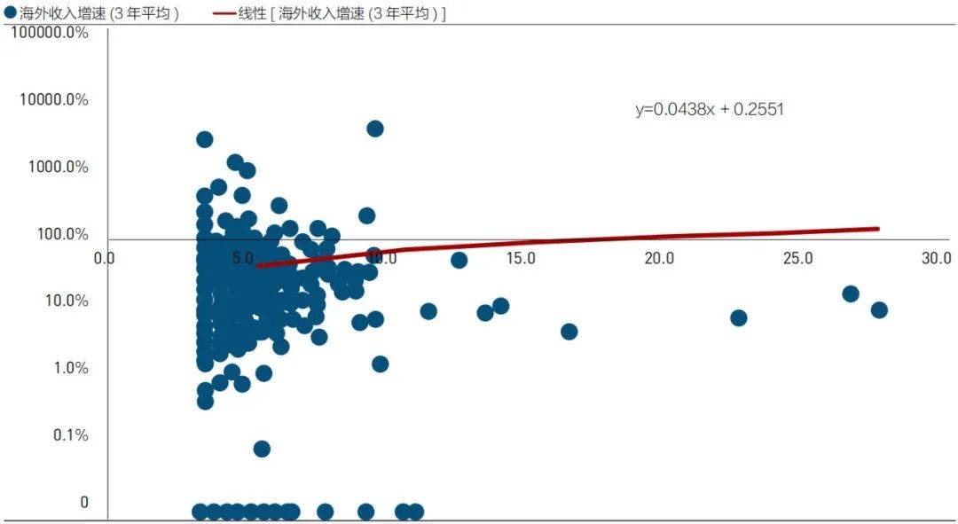 注:横轴为外籍高管占比,纵轴为过去三年平均海外收入增速。