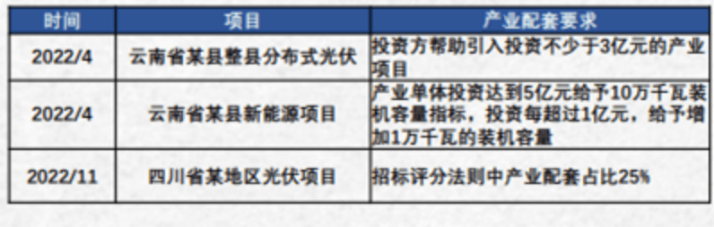 图表5:2022年部分省市地区光伏项目产业配套要求