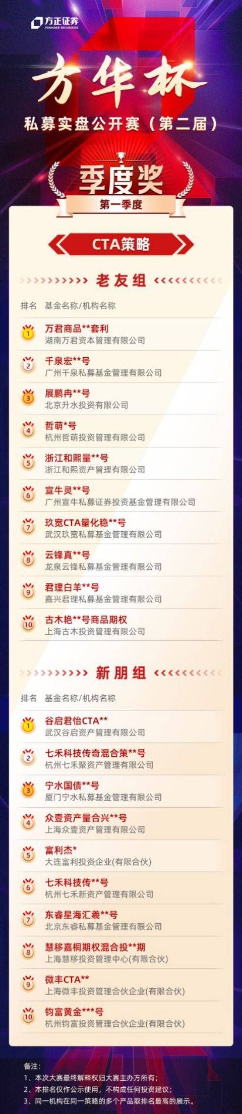 附:第二届“方华杯”私募实盘公开赛第一赛季获奖名单