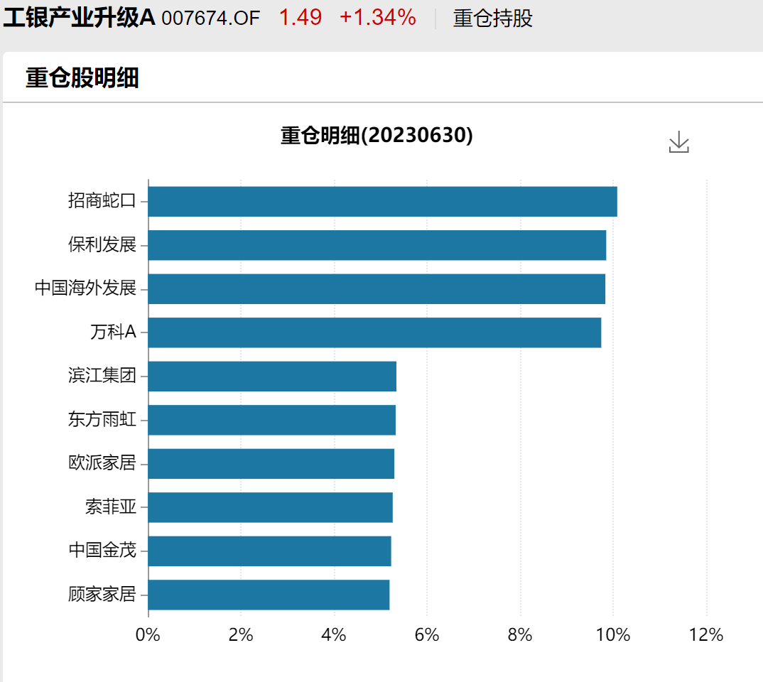 前十大重仓股中,有两只港股,且都是地产股,是近一周反弹的主力板块。A股方面主要配置是地产+家电,符合这波反弹的低估值特征。