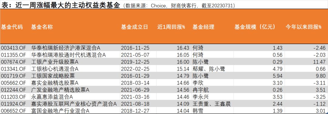 再来看看近一周涨幅榜前十的主动管理型基金。