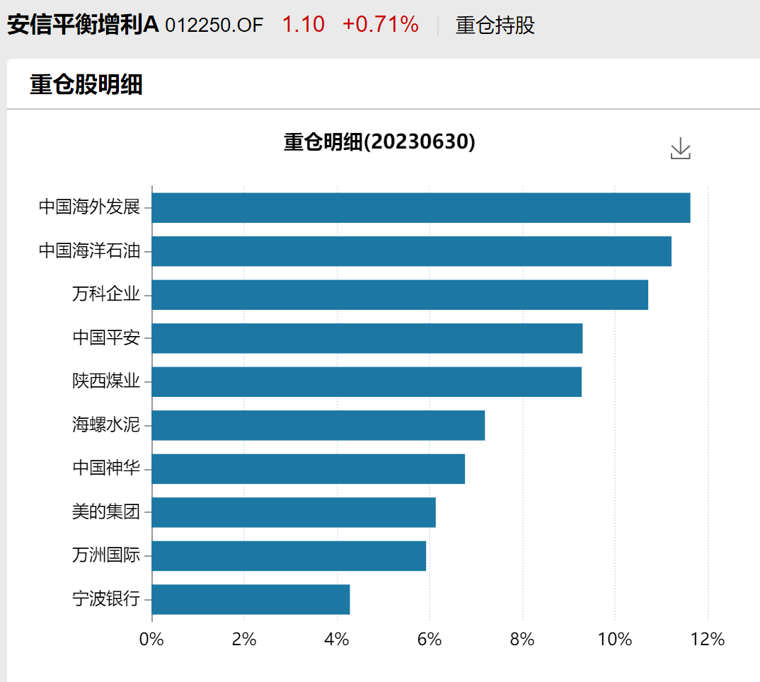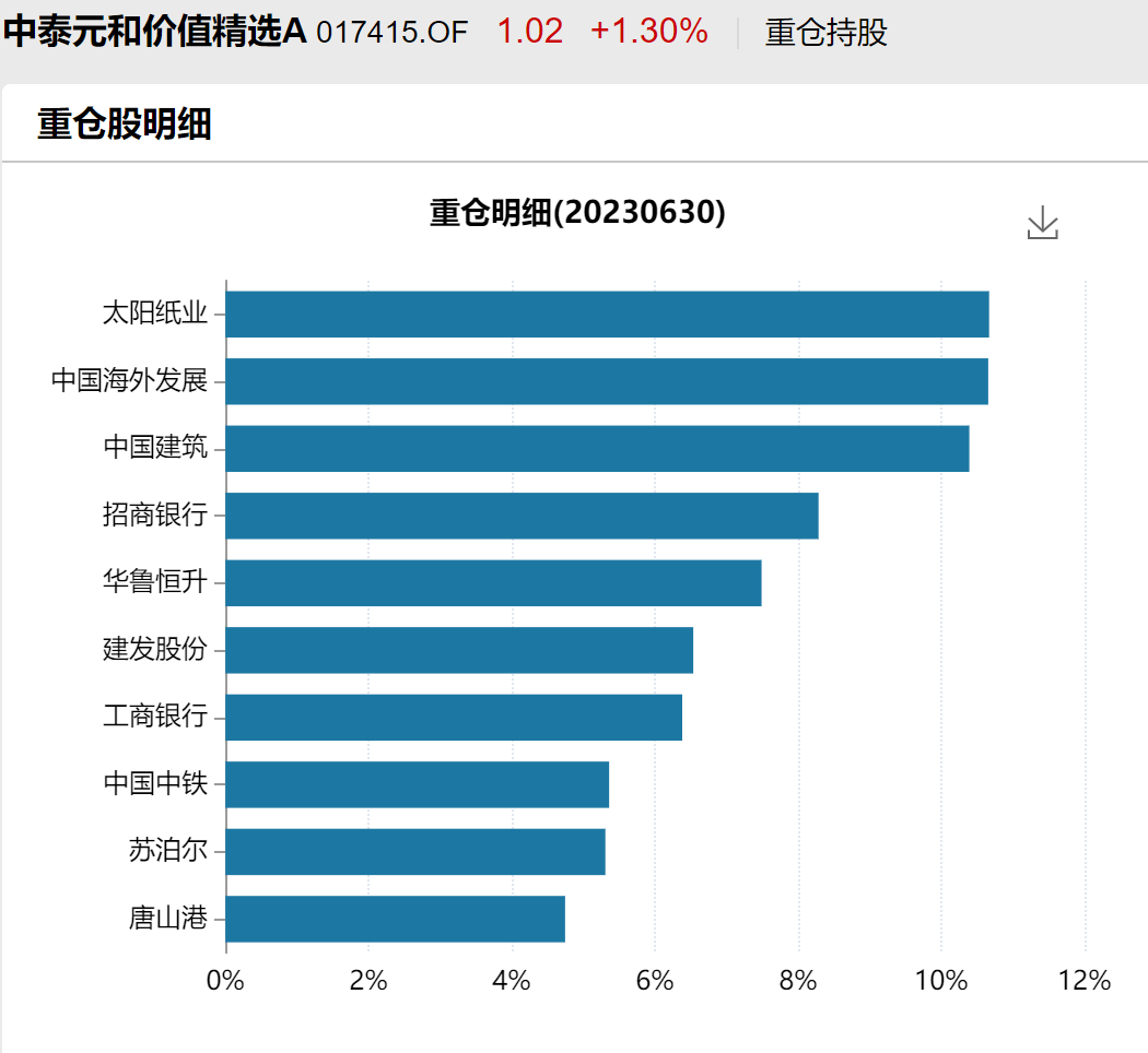 重仓股方面,还是维持张翼飞的风格:价值、低估。