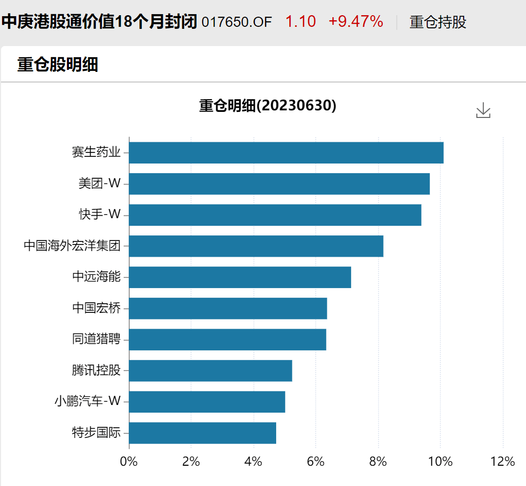 重仓股方面,可以看到,清一色的港股,其中就有这波行情的引领者小鹏汽车!