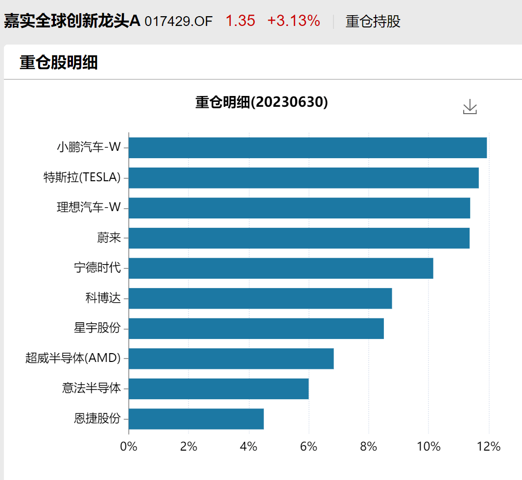 从重仓股来看,基金倾向于在全球范围内配置科技股,重点配置了新能源车产业链和人工智能领域。