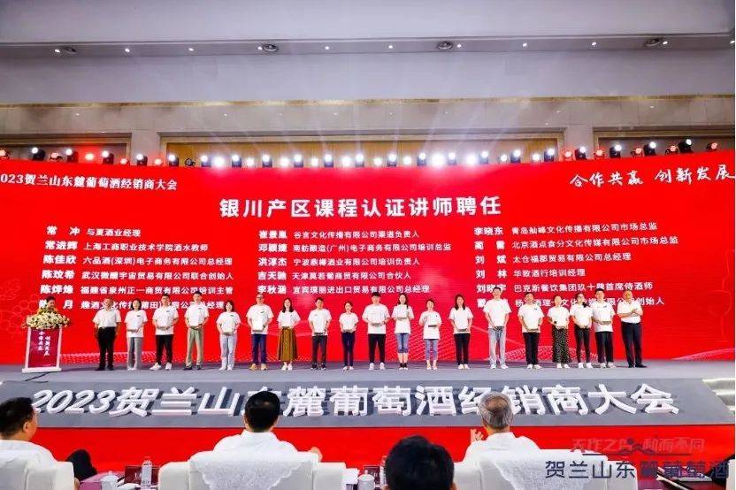 经过前期培训和考试,贺兰山东麓葡萄酒银川产区课程新一批认证讲师名单公布,举行讲师聘任仪式,常冲、常进辉、陈佳欣、陈玟希、陈烨烽、陈月、崔景胤、邓颖婕、洪淳杰、吉天驰、李秋涵、李晓东、蔺雷、刘斌、刘林、刘晓宇、蒙伟、聂晨璐、钱琦、沙开宇、沈云斌、盛钟立、孙宇、佟哲、王峻、王沾东、吴细香、徐云、于涵、张恺祺、张婷、招耿春、周晨竹共33人成为贺兰山东麓葡萄酒银川产区课程新一批认证讲师,为贺兰山东麓银川产区葡萄酒的推广与传播注入新的活力和动力。