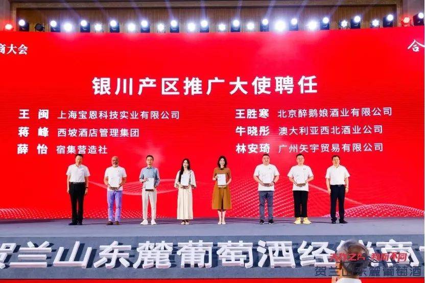 接下来是另一个重要环节,贺兰山东麓葡萄酒银川产区聘任上海宝恩科技实业有限公司董事长王闽、西坡酒店管理集团市场销售总监蒋峰、宿集营造社COO薛怡、澳大利亚西北酒业公司总经理牛晓彤、广州矢宇贸易有限公司总经理林安琦、北京醉鹅娘酒业有限公司创始人兼CEO王胜寒、京东零售大商超事业部酒类业务部总经理赵煜、京东零售大商超事业部葡萄酒采销负责人肖诺8人为贺兰山东麓葡萄酒银川产区推广大使,贺兰山东麓葡萄酒银川产区带着“银川”产区标签的推广使者和代言人再添新生力量。相信有了产区推广大使的大力推广,贺兰山东麓葡萄酒银川产区、贺兰山东麓葡萄酒将会获得更多的关注和更好的发展。