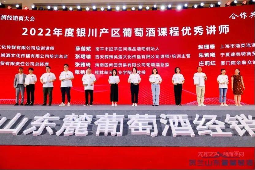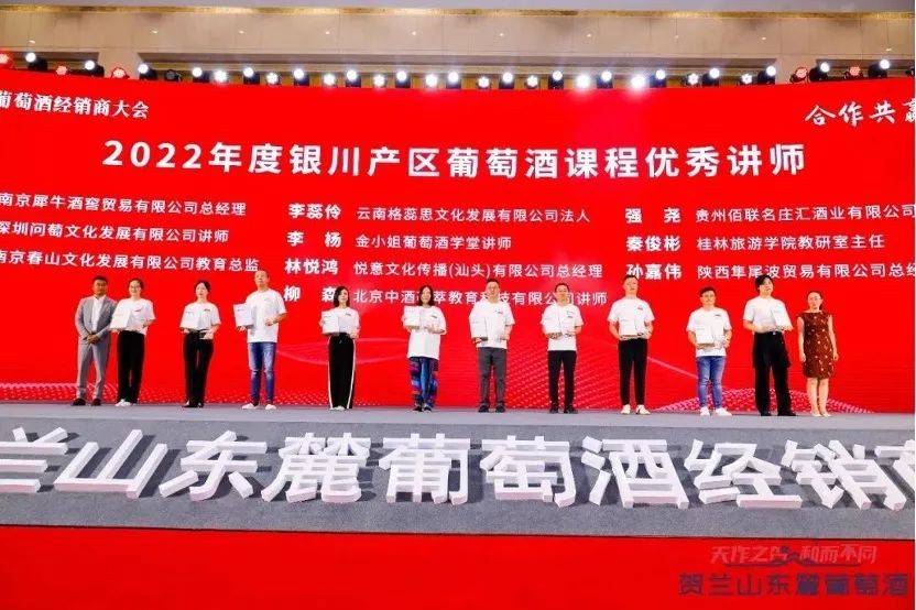 此次2022年度贺兰山东麓葡萄酒银川产区课程优秀讲师的表彰仪式,用于表彰和感谢为贺兰山东麓葡萄酒银川产区课程辛勤付出的认证讲师们。自2021年4月,2021年贺兰山东麓葡萄酒银川产区春季经销商大会《贺兰山东麓葡萄酒银川产区教程》首发,并聘任首批课程认证讲师以来,在讲师们专业且辛勤的工作下,银川产区课程持续发力,从5月8日第一堂课开始,截止到2023年7月15日,银川产区已开设了线下课程293期,落地直接培训人数5921人,覆盖56座城市,形式多样,内容创新,带动销售超过5000万元,相关媒体报道覆盖千万级人群,获得行业广泛关注。