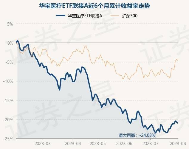 8月1日,华宝医疗ETF联接A最新单位净值为0.7334元,累计净值为0.5209元,较前一交易日下跌0.3%。历史数据显示该基金近1个月上涨1.44%,近3个月下跌8.53%,近6个月下跌21.02%,近1年下跌18.41%。该基金近6个月的累计收益率走势如下图: