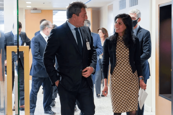 报道称,6月30日阿根廷政府曾使用特别提款权和人民币向IMF部分还款,此为该国首次使用人民币偿付外债。马萨在讲话中感谢拉美开发银行的支持,并特别感谢了中国政府提供的帮助。