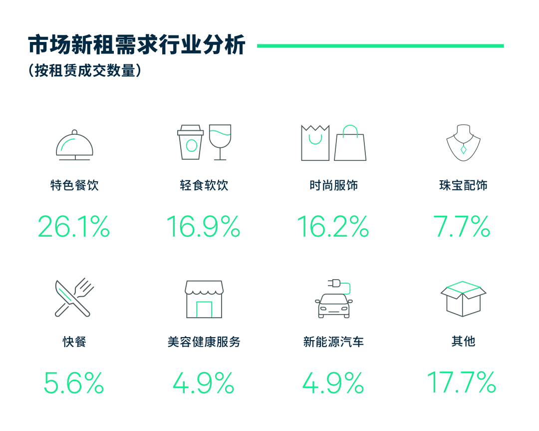 第一太平戴维斯方面也表示,尽管第一季度部分品牌因受此前疫情的累积性影响而退租,但第二季度起,品牌扩张信心逐步修复。其中,餐饮、时尚、配饰及化妆品这几个业态的租赁活动增长最为明显。