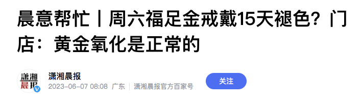 根据《消费者报道》的统计信息,从2017年至2022年,周六福累计7次登上了质检黑榜,更是遭到过上海、辽宁、山西等多个地区监督部门的通报。甚至在本次IPO期间,《潇湘晨报》曾在2023年6月7日曝光,周六福足金戒指疑似掺假,店员以“氧化”为借口拒绝退货的情况。