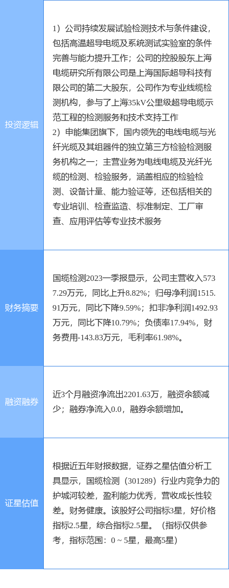 国缆检测涨停收盘,收盘价52.34元。该股于9点31分涨停,8次打开涨停,截止收盘封单资金为2667.51万元,占其流通市值2.01%。