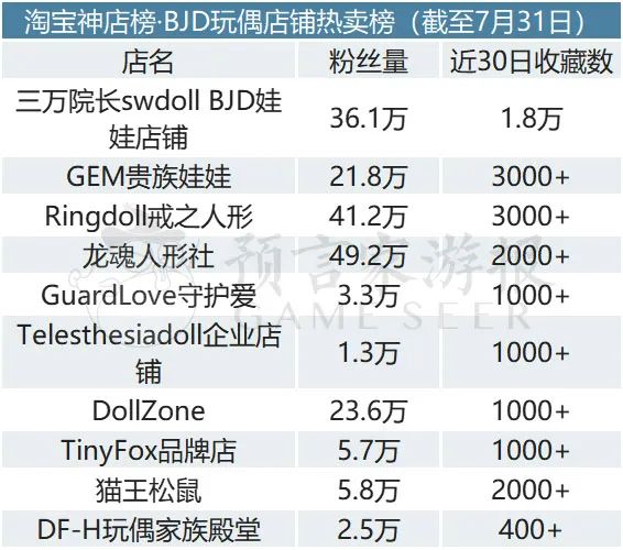 淘宝神店榜·BJD玩偶店铺热卖榜