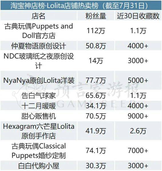 淘宝神店榜·Lolita店铺热卖榜