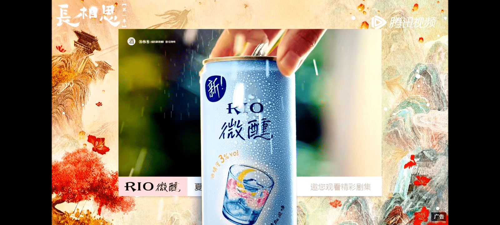 大雨截停周末,很多人开始宅家生活。窝在沙发中追着最近热播的《长相思》成为众多年轻人的首选。在片中无意间跳转出锐澳预调鸡尾酒的广告,则精准地投放给目标客群。