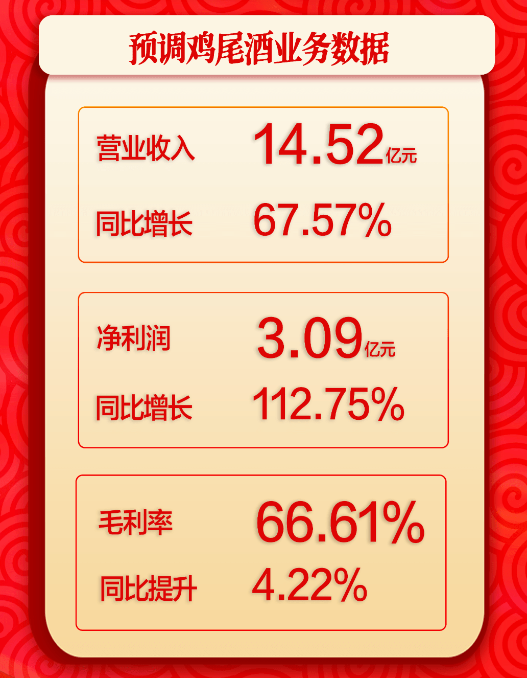 半年报的好成绩从今年一季报中就有迹可循。2023年第一季度,百润股份实现营收7.6亿元,同比增长41.11%,实现净利润1.88亿元,同比增长104.73%。其中,预调鸡尾酒实现主营业务收入6.74亿元,同比增长46.74%;实现净利润1.4亿元,同比增长145.86%。百润股份还表示,在此基础上,公司全年经营业绩有望继续保持良好增长。
