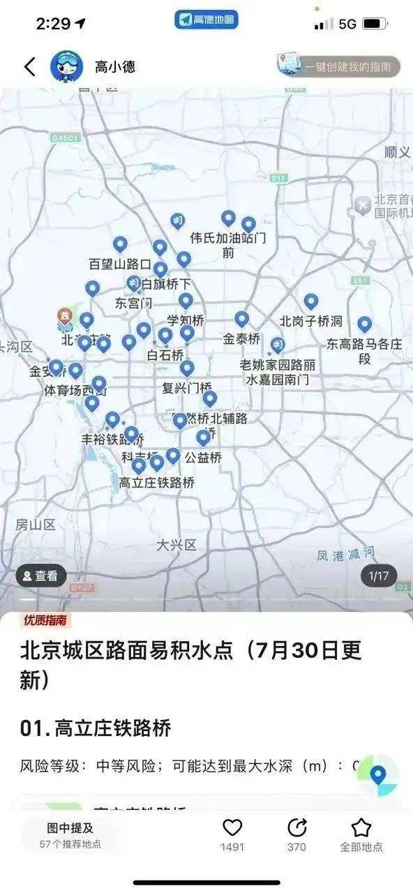 这些城市的用户通过在高德地图App中搜索“城市名+积水地图”即可查看相关信息。此外,高德地图用户还能通过自行创建指南的形式,上传身边积水点信息,官方审核通过后即可上线,为其他人的出行提供参考。