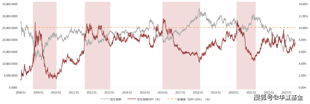 数据来源:Wind,中信建投证券、华夏基金,截至2023.6.30。恒生指数股权风险溢价(ERP)取1/恒指PE-美债十年期收益率。