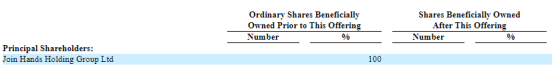招股书显示,牵手一生在上市前的股权架构中,Join Hands Holding Group Ltd持有100%的股权。