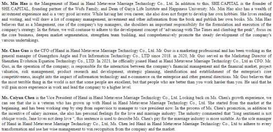 2023年7月26日,来自Hand in Hand Metaverse Marriage Technology Co., Ltd(以下简称“牵手一生”)在美国证监会(SEC)公开披露招股书,拟在美国纳斯达克上市(股票代码HAND)。