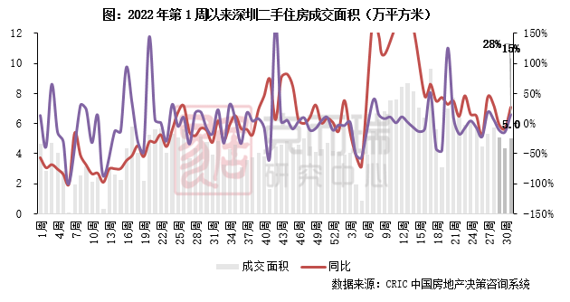 2023年第31周,深圳二手房成交面积5.0万平方米,环比增长15%,同比增长28%,同比转正主要是基数原因,去年31周以后深圳二手房市场逐渐承压,成交进入震荡下行区间。