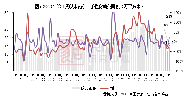 2023年第31周,南京二手住房成交面积14.5万平方米,环比增长21%,同比下降19%,与30周相比略有好转。
