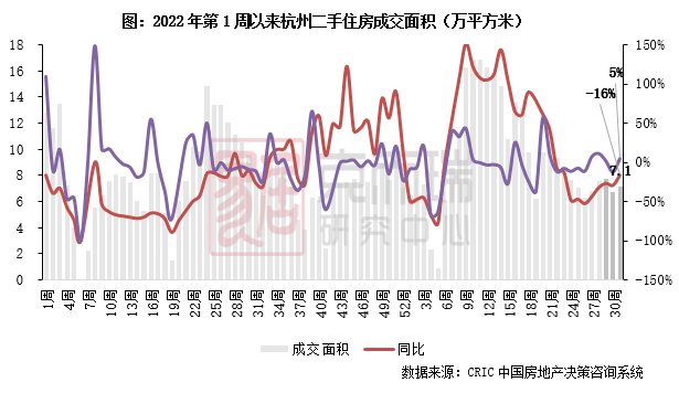 2023年第31周,杭州二手住房成交面积7.1万平方米,环比增长5%,同比下降16%,成交反弹非常有限。