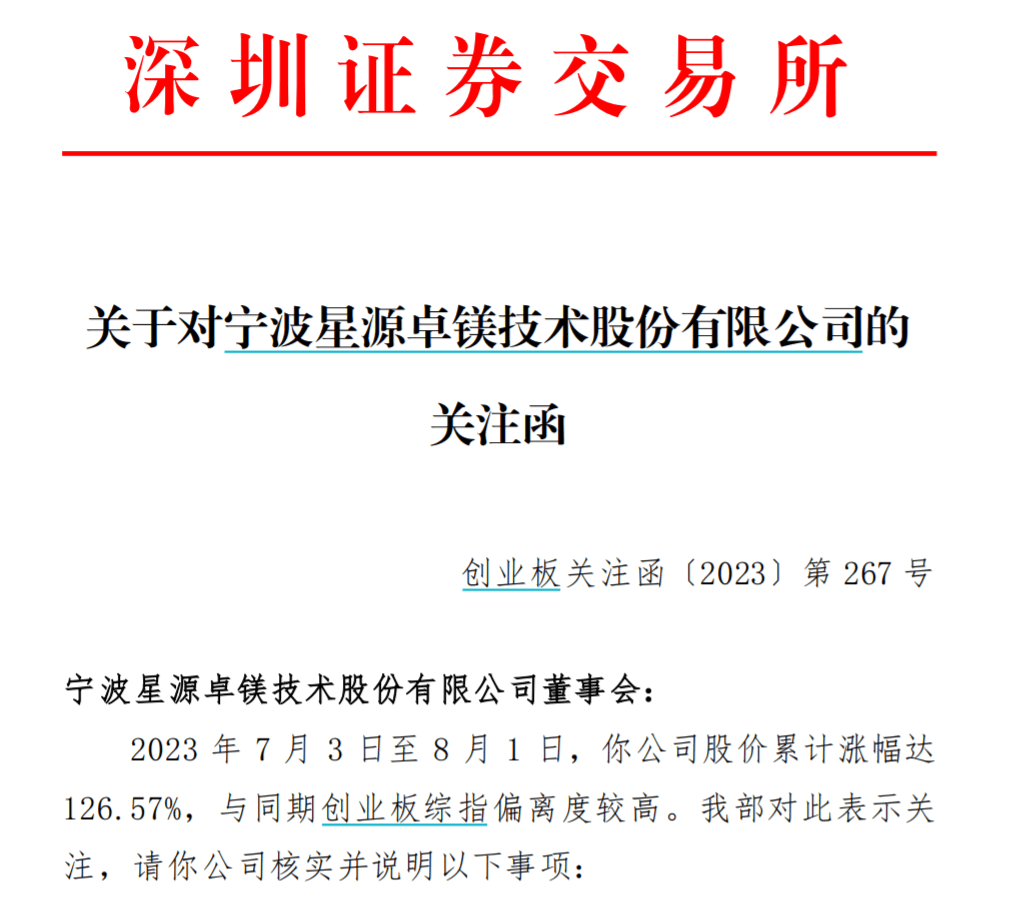 2022年12月15日上市的,今年以来涨幅已逼近160%。尤其是2023年7月3日至8月1日期间,公司股价累计涨幅达126.57%,与同期创业板综指偏离度较高。