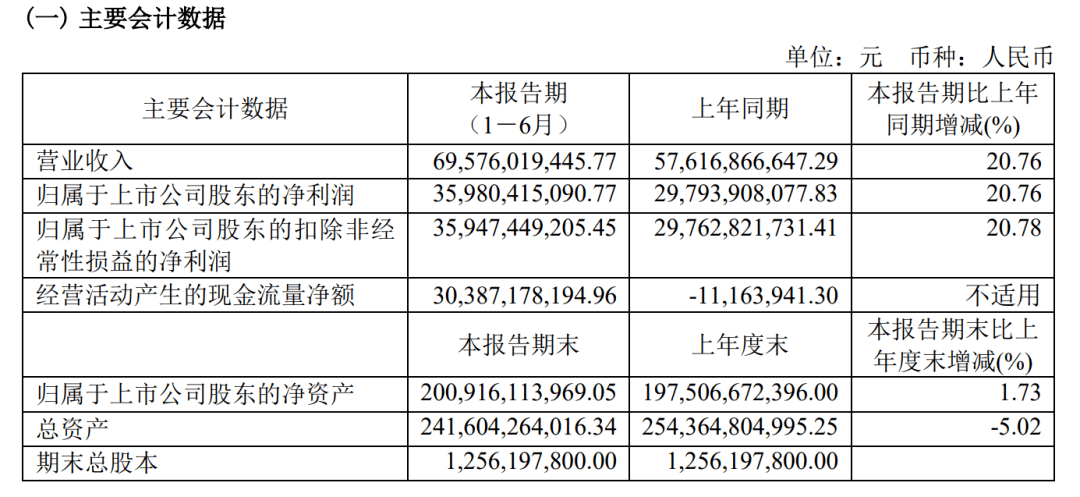 今年上半年,贵州茅台实现营业收入695.76亿元,同比增长约两成,基本每股收益28.64元。 其中,在第二季度白酒传统销售淡季,公司实现净利润152亿元,环比下降约27%,与去年同期情况类似;第二季度公司净利率为51.29%,同比、环比均出现下降。