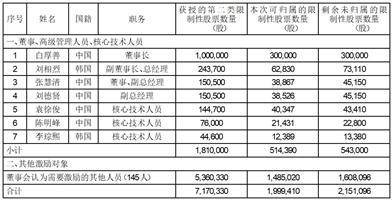 注:上表包含本次激励计划中符合归属条件的全体对象。