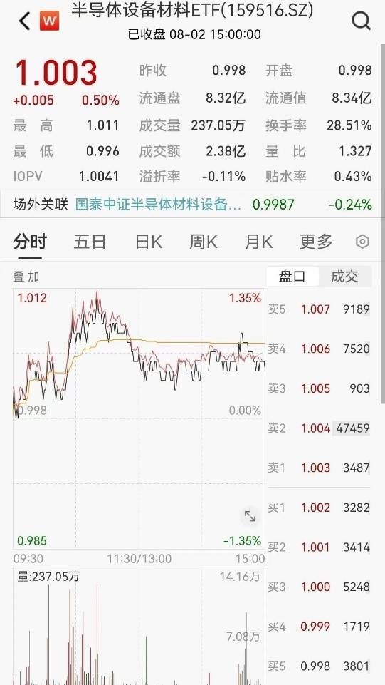 半导体设备材料ETF(159516)8月2日表现位居市场前列,收涨0.50%。