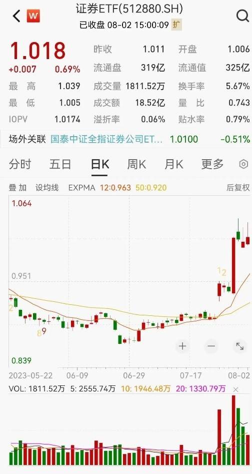 证券板块8月2日盘中冲高回落,证券ETF(512880)收涨0.69%。本轮上涨行情中,证券板块累积的涨幅并不大,当行情转弱的时候滞涨的证券板块就会有很好的护盘价值,而且长远来看证券行业也具备长线投资价值。