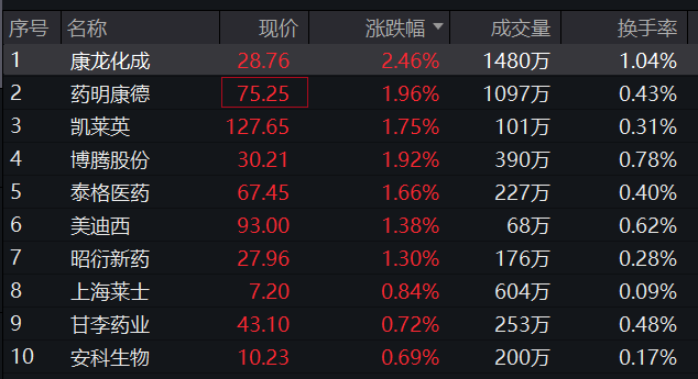 生物医药ETF华安(159508)紧密跟踪国证生物医药指数。指数成份股中,康龙化成上涨2.46%,药明康德上涨1.96%,凯莱英、博腾股份、泰格医药等个股跟涨。