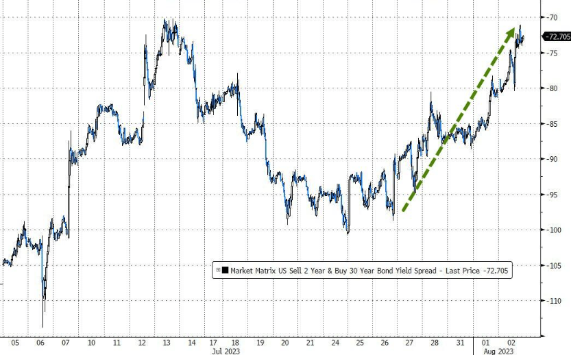 在长期收益率相对较低时,发行更多的长期债券有助于缓解倒挂情况。CreditSights的策略师预计,收益率曲线将在未来一年内恢复正常。消息发布后,2/30年期美债收益率曲线进一步变陡,回到7月中旬高点附近。
