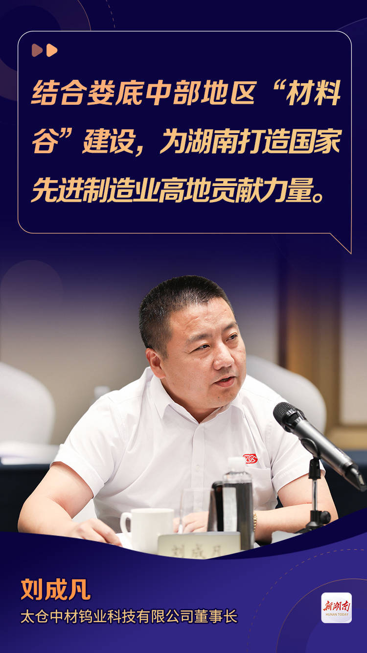 会上,12位湘商企业家分别介绍了企业发展情况,从促进人才兴湘、打造研发创新平台、建强产业链等方面为湖南高质量发展提出意见建议,饱含对家乡的深情厚谊。记者梳理他们的精彩观点,以飨读者。