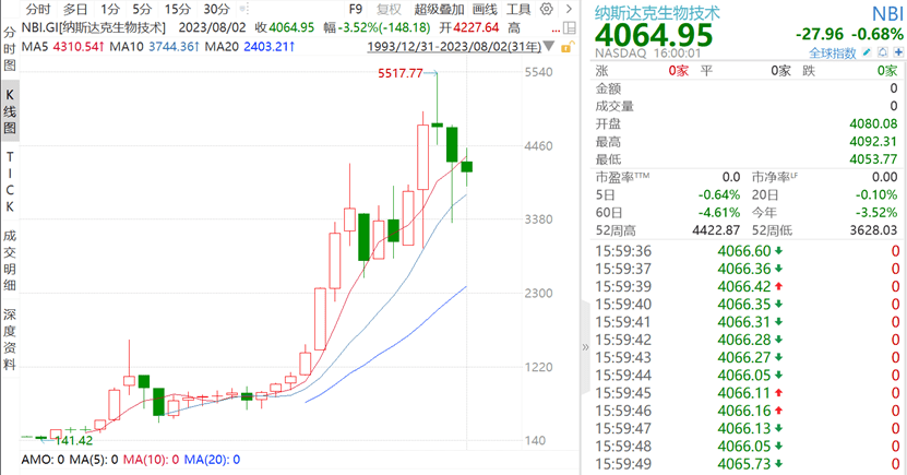 主流ETF方面,8月3日,纳指生物科技ETF(513290)低开后向上拉升,溢价明显,截止发布,纳指生物科技ETF(513290)横盘,溢价率高达0.63%,买盘持续强势,反映资金或继续借道ETF布局美股医药板块!