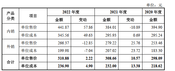 招股书披露,豪江智能智能家居产品的毛利占比在70%以上,而2022年智能家居内销产品单位成本为345.56元,较2021年295.93元上涨49.65元,售价涨幅为57.86元。