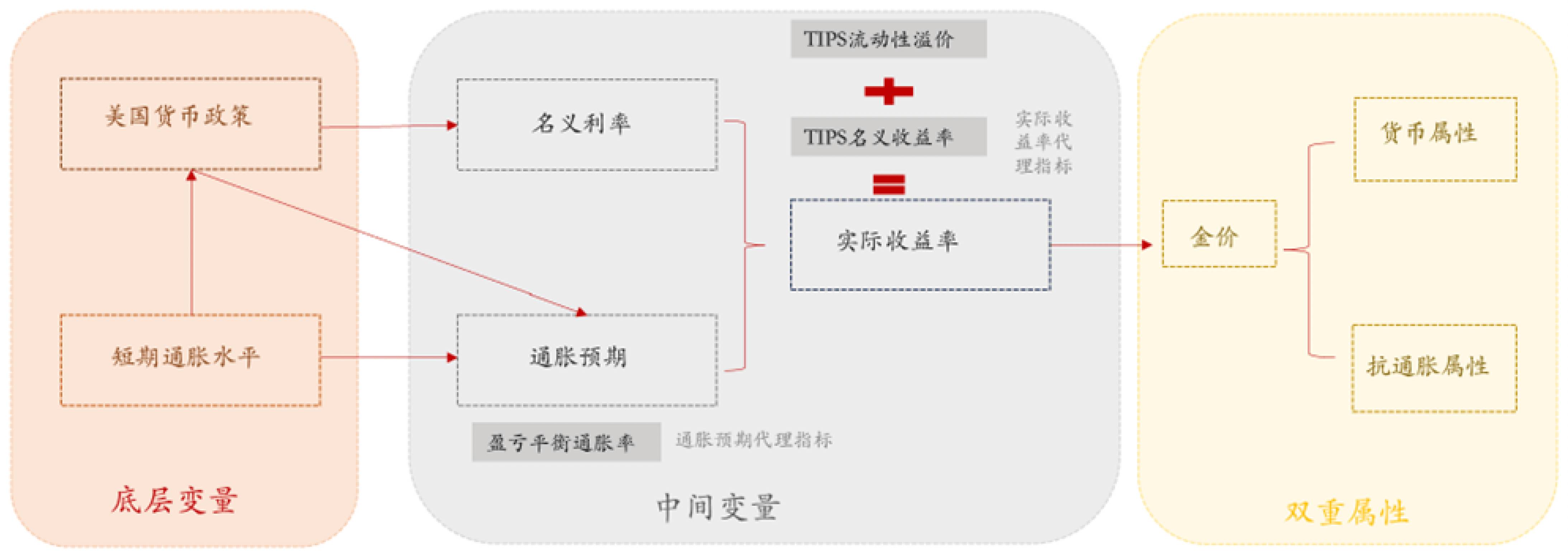 实际收益率是名义收益率-通胀预期,所以金价走势一方面和美国货币政策有关(影响名义利率),另一方面也需考虑通胀预期的变化。