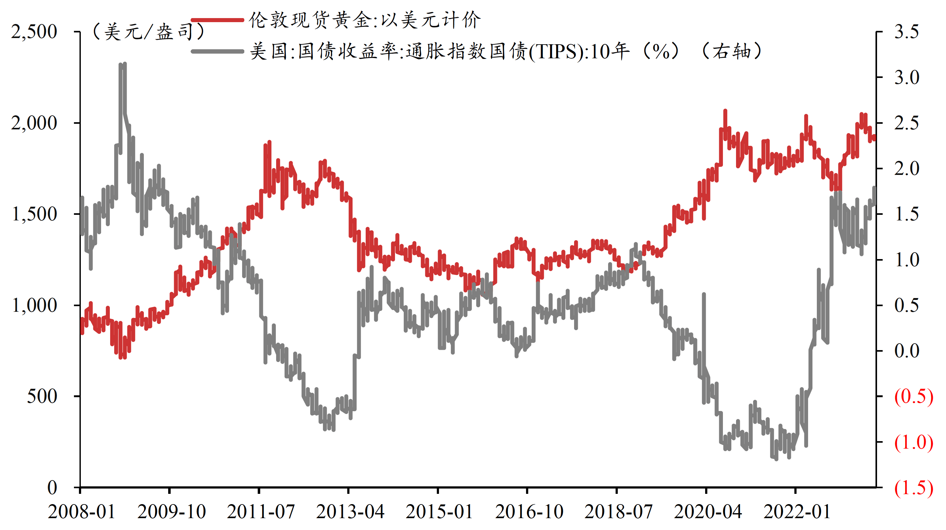 图2 2008年金融危机后,金价走势和实际收益率维持了较为显著的负相关性
