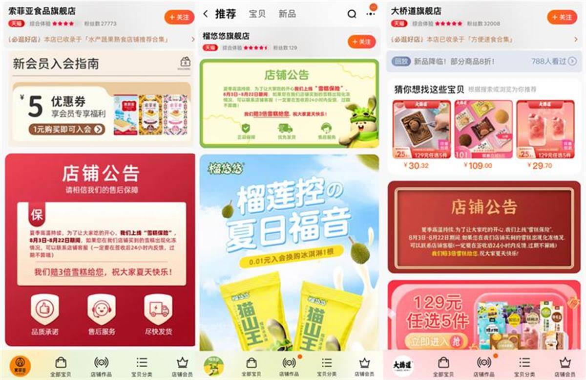淘宝夏日季期间,消费者可在淘宝搜索“天猫雪糕保险”购买上了保险的雪糕。据悉,8月淘宝夏日季还将上线88会员节、七夕节、新势力周、好价节等促销活动。