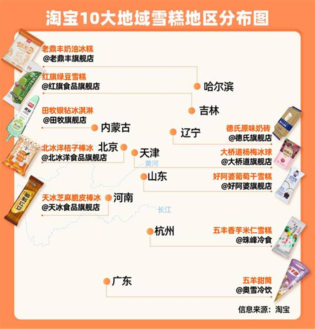 除了服务升级,淘宝还推出10大地域特色雪糕,浙江五丰、河南天冰、广州五羊,主打小时候的味道。家住杭州的傅女士告诉记者,在她记忆里夏天就是五丰大脚板、1234和泰国米仁。上班之后,她才发现,不少外地同事甚至不知道“五丰”这个品牌。