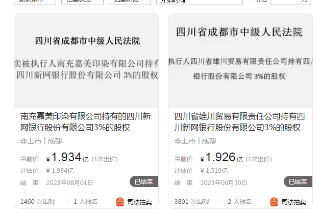 就在不久前6月30日,新网银行的另一笔3%的股权以1.926亿元成功拍出。