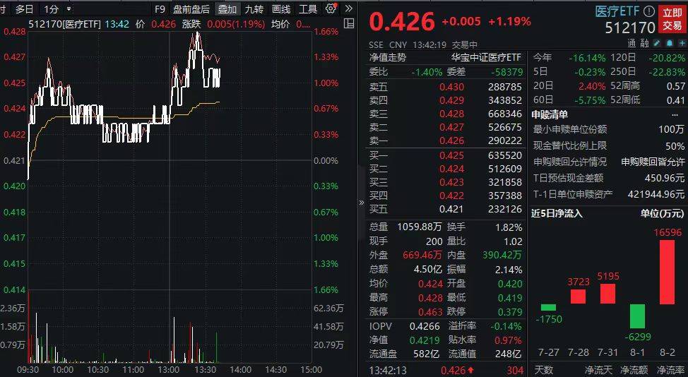 午后,CXO概念股再发力,康龙化成、皓元医药涨超4%,药明康德大涨超3%!医疗板块全线上扬,医疗ETF(512170)45度拉升涨超1%。