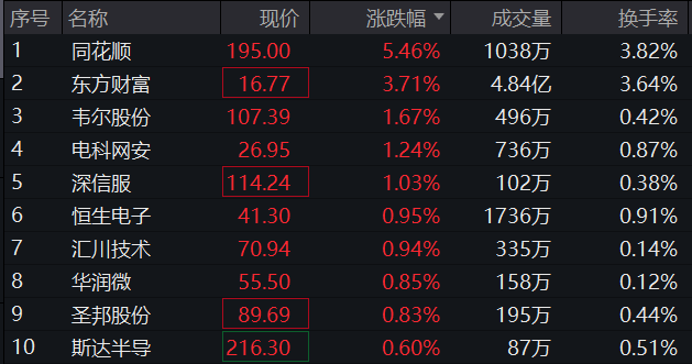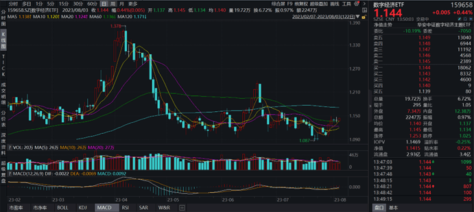 数字经济ETF(159658)紧密跟踪中证数字经济主题指数,指数成份股中,同花顺上涨5.46%,东方财富上涨3.71%,韦尔股份、电科网安、深信服等个股跟涨。