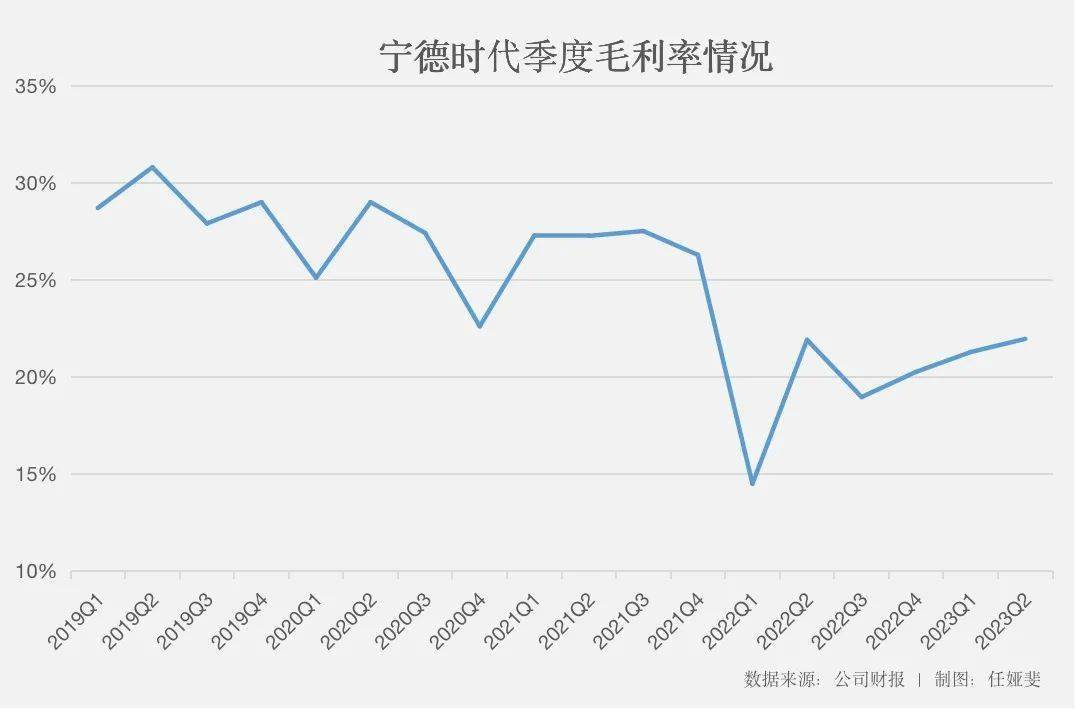在供需极度错配下,成本压力在2022年层层传导至动力电池企业和车企,利润被严重挤压。数据显示,2019年毛利率为29.06%,2022年下降至20.25%,2023年第一季度为21.27%。