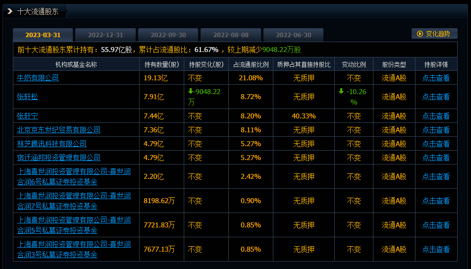 从股权结构看,截至今年一季度末,京东方面持有永辉超市7.36亿股,占公司总股本比例为8.11%,为永辉超市第四大股东;此外,京东一致行动人宿迁涵邦投资管理有限公司持有永辉超市4.79亿股,占公司总股本比例为5.27%,为永辉超市第六大股东。