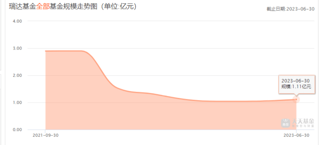 在其不长的任职期内,瑞达基金的资产总规模并未发生明显变化。截至今年二季度末,公司规模1.11亿元,与2022年三季度末1.1亿元的规模基本持平。
