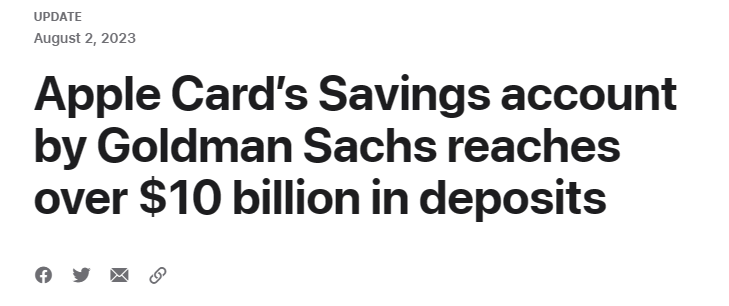 今年4月,科技巨头苹果在官网宣布,其与美国投行高盛集团合作的Apple Card Savings高收益储蓄账户于正式上线,储蓄账户的年利率为4.15%。